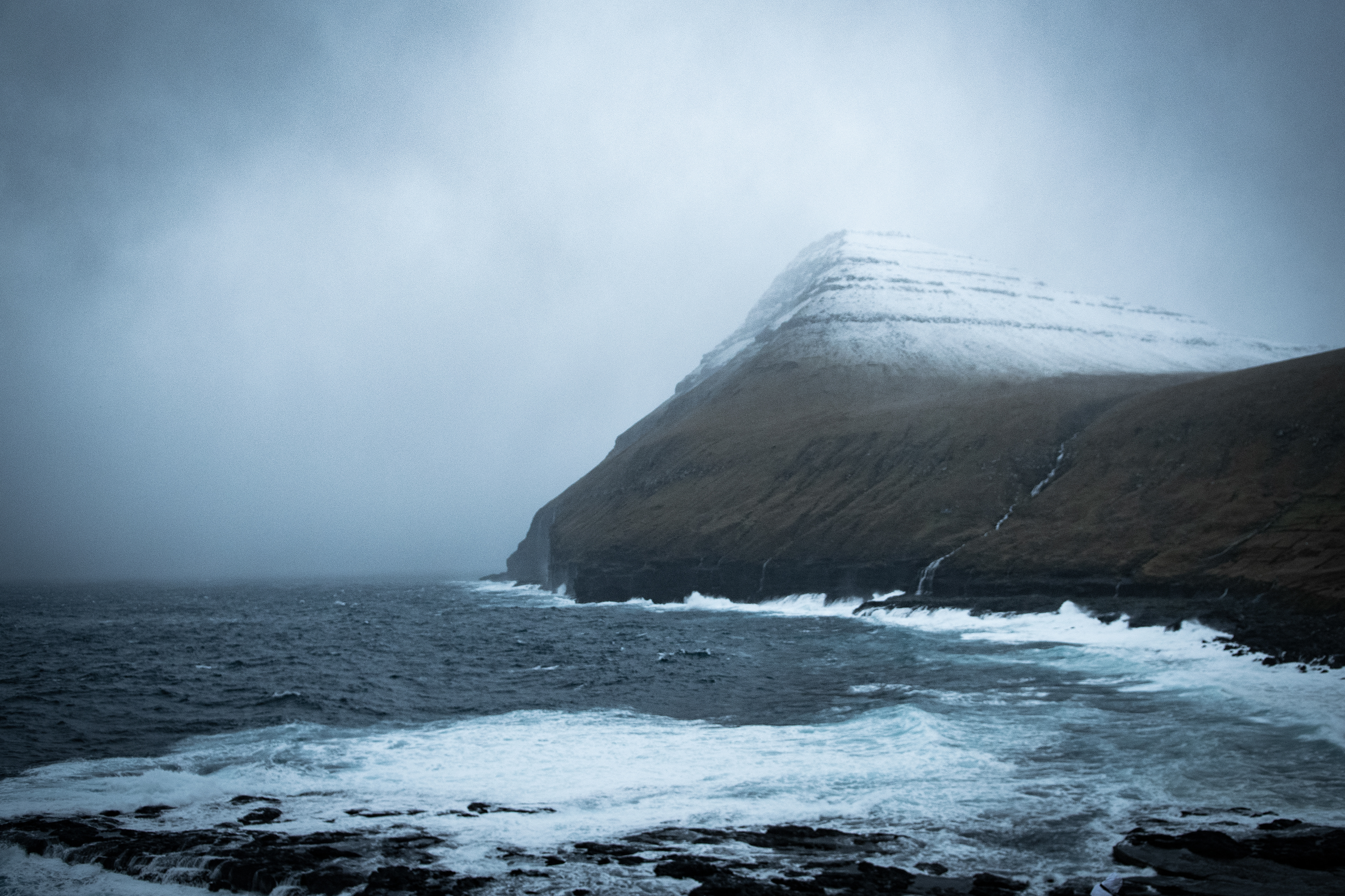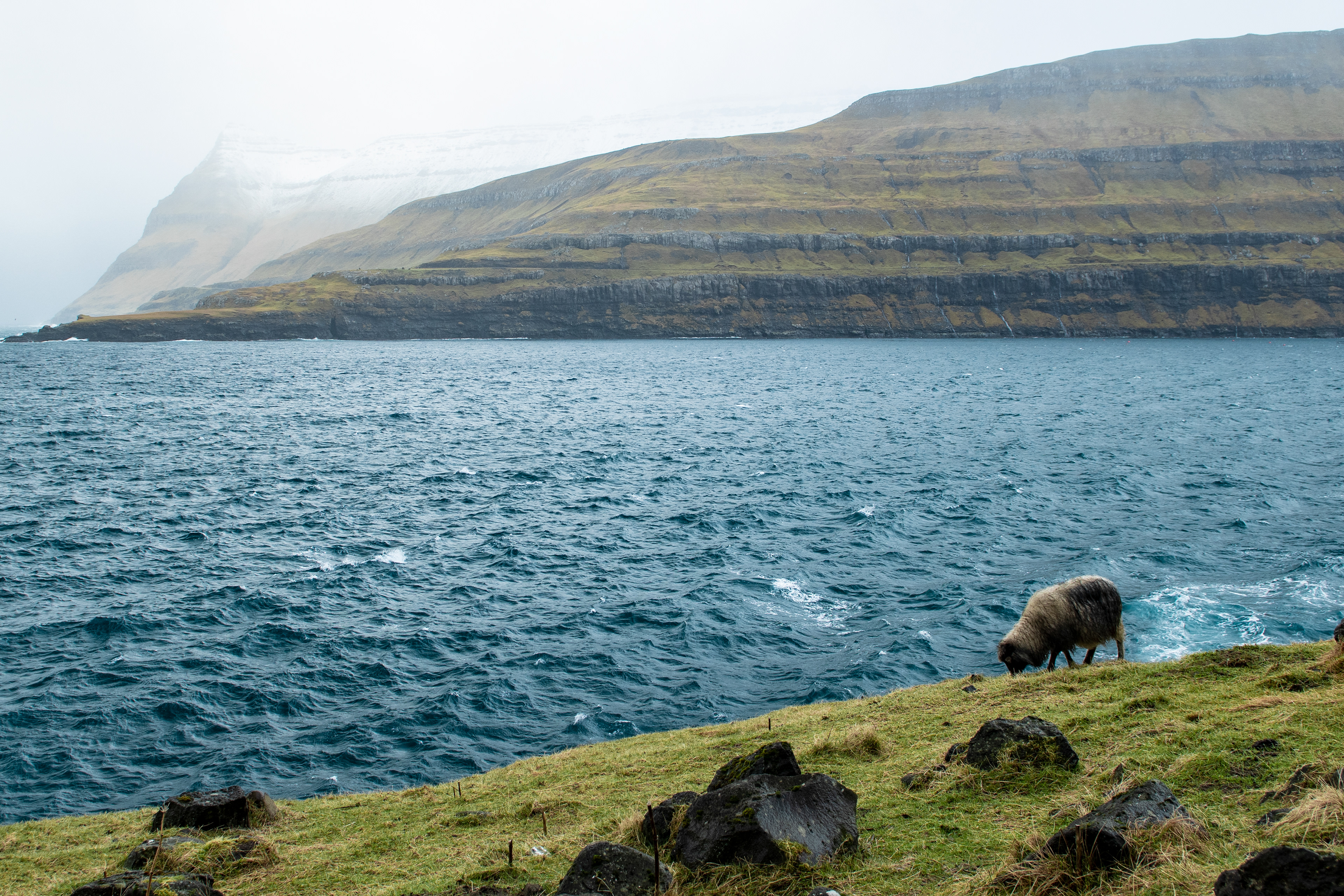 Ci svegliamo in una mattina nuvolosa che profuma di neve ma decidiamo ugualmente di spostarci a nord verso l'iconica Gjògv che purtroppo si trova oltre un valico montano abbastanza periglioso. Scattata qualche fotografia attorno alla chiesa di Selatrað, partiamo alla volta della summenzionata località, fermandoci periodicamente a scattare fotografie del paesaggio incredibile che ci circonda.