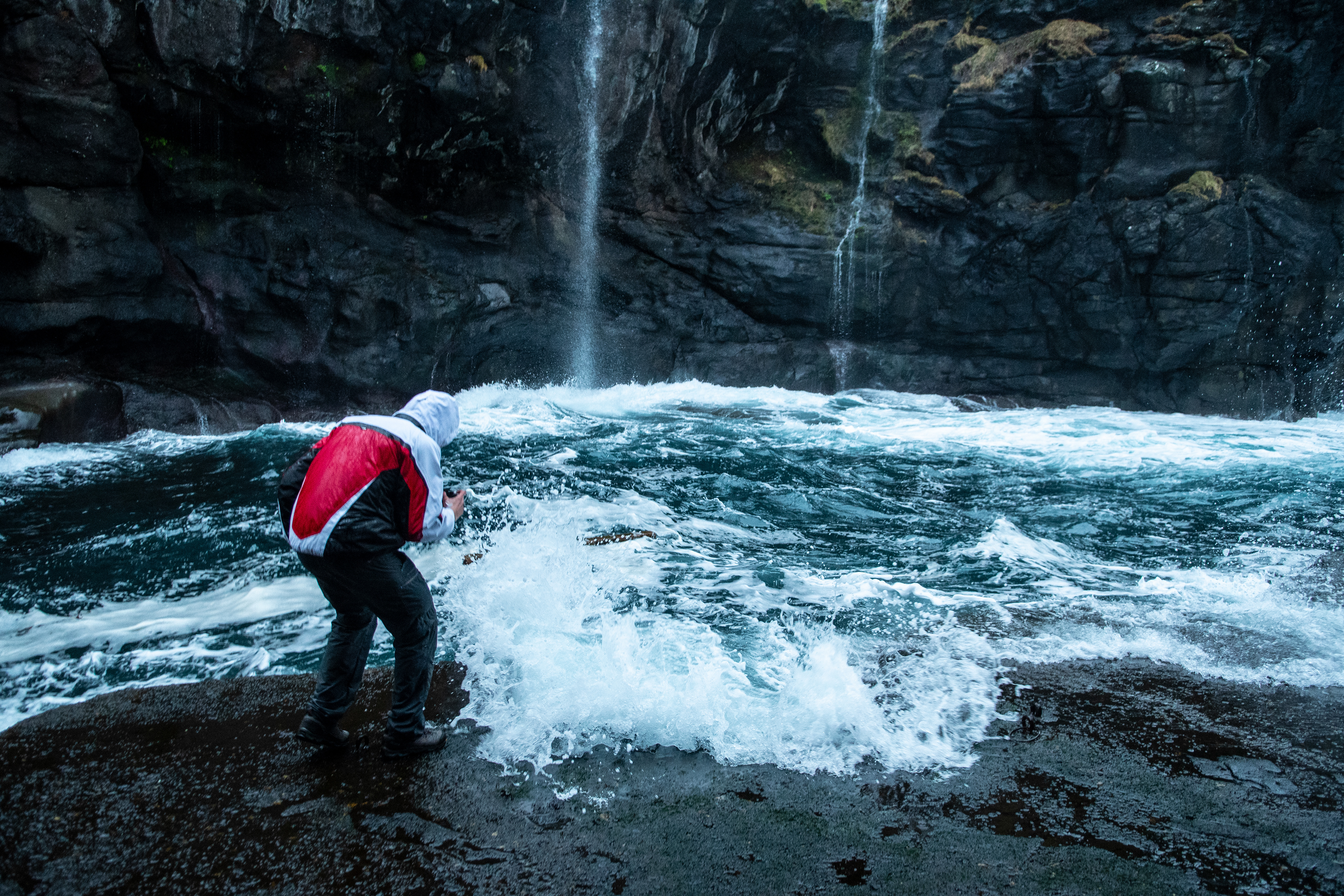 In una situazione del genere è facile cadere nel panico e temere il peggio; del resto siamo letteralmente persi su un declivio roccioso su un gruppo di isole disperso nel nord Atlantico durante una tempesta in aumento a diversi km dalla civiltà, non è di certo la situazione più comoda. Il paesaggio attorno a noi però, pur essendo ispido, bagnato, aspro e all'apparenza poco accogliente, ci rincuora e ci godiamo ogni fradicio passo nel fango e ogni scivolone sull'erba. Siamo felici e cantiamo, ridiamo marciando verso il fondo del fiordo.